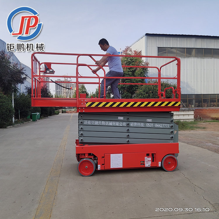 自行走升降機又稱:全自動自行走式升降機 自行走電動升降平臺車 自動行走升降平臺 移動升降平臺 自行走電動升降平臺 直流電動驅動輪具有自鎖功能...